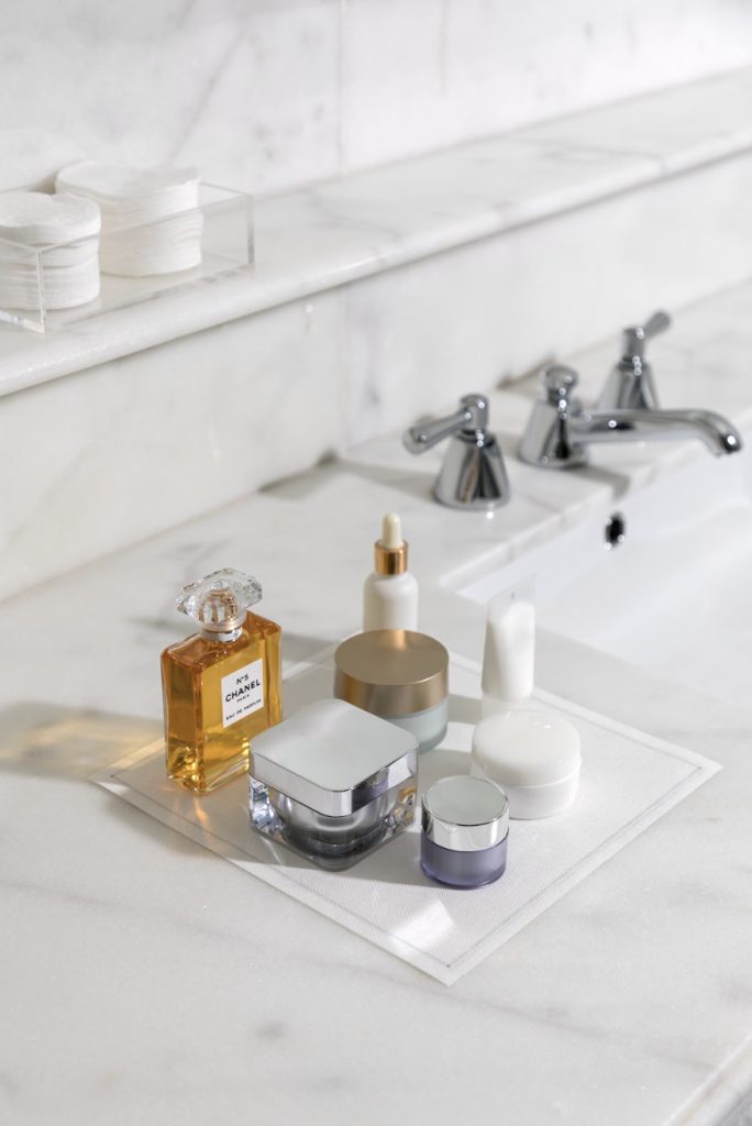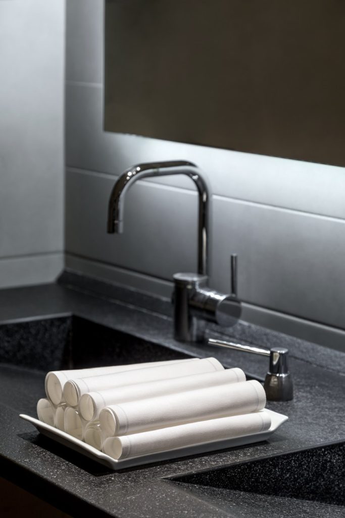 このアメニティマットには、心地よい手触りのリサイクル素材・オットマンコットンを使用。底面にはノンスリップ加工を施しており、アメニティを美しく整え、滑らず、清潔感のある空間を演出します。
