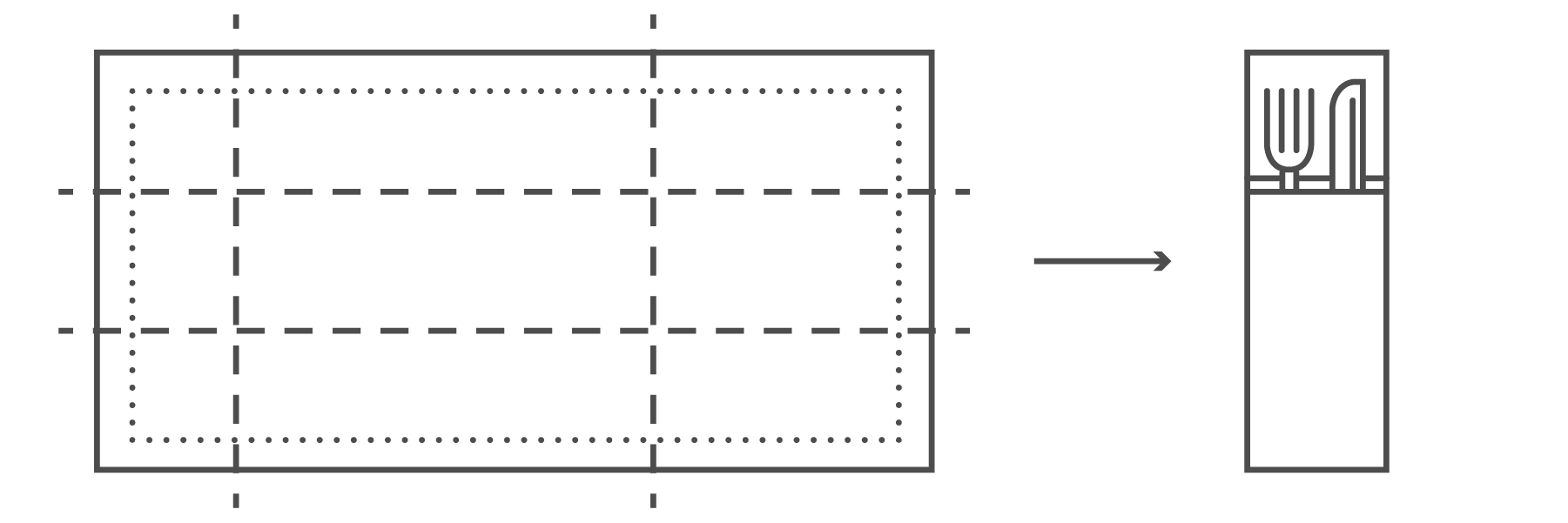 レストランやホテル、ウエディングなど、さまざまなシーンでお客様のニーズに応える美しく機能的な折り方が特徴です。洗練されたデザインと実用性も兼ね備えた多彩な折り方のバリエーションにより、テーブルコーディネートの幅が広がり、ゲストに特別な印象を与えます。ロゴマークの印刷やブランドカラーの採用により、コンセプトに合わせたオリジナリティあふれる演出が可能になり、ブランドイメージを一層際立たせることができます。